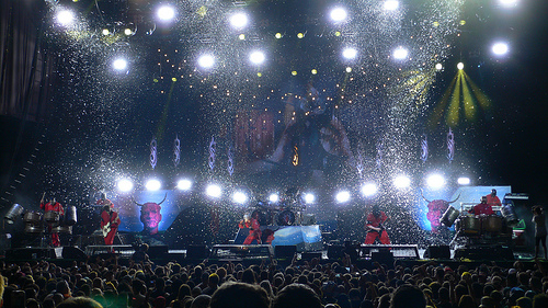 Quando estes homens sobem ao palco, é inflexivelmente uma matéria-prima, real, e arrebatadora como eles vão da musicalidade alucinante para a violência que cada membro fisicamente e espiritualmente perdura. Durante o Rockstar Energy Drink Mayhem Festival em Mansfield – Massachusetts, o grupo de Iowa hipnotizou e assombrou o embalado Comcast Center como só eles podem. Uma cortina vermelha levantou após a introdução do seu auto-intitulado clássico; todos os oito músicos ainda ficaram olhando para a noite infernal em que realizariam um show que ninguém esqueceria ou morreriam no processo.